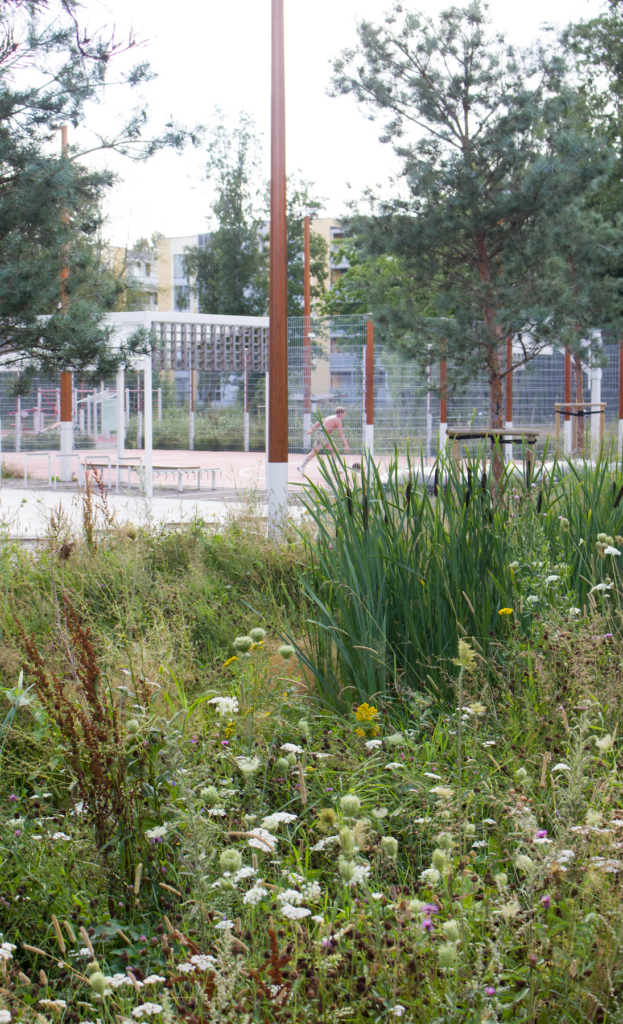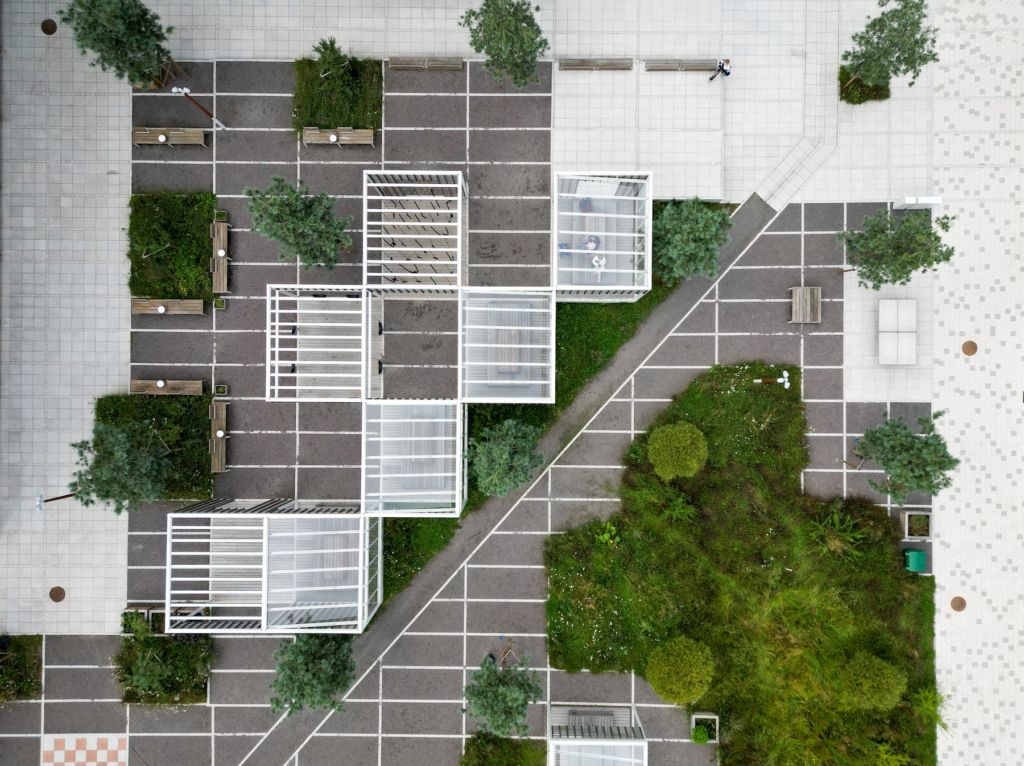 Within the outdoor area of varied functionalities, there is also room for creative interventions – the outdoor exhibition area along the main path allows people to explore the landscape annually re-designed by the students.