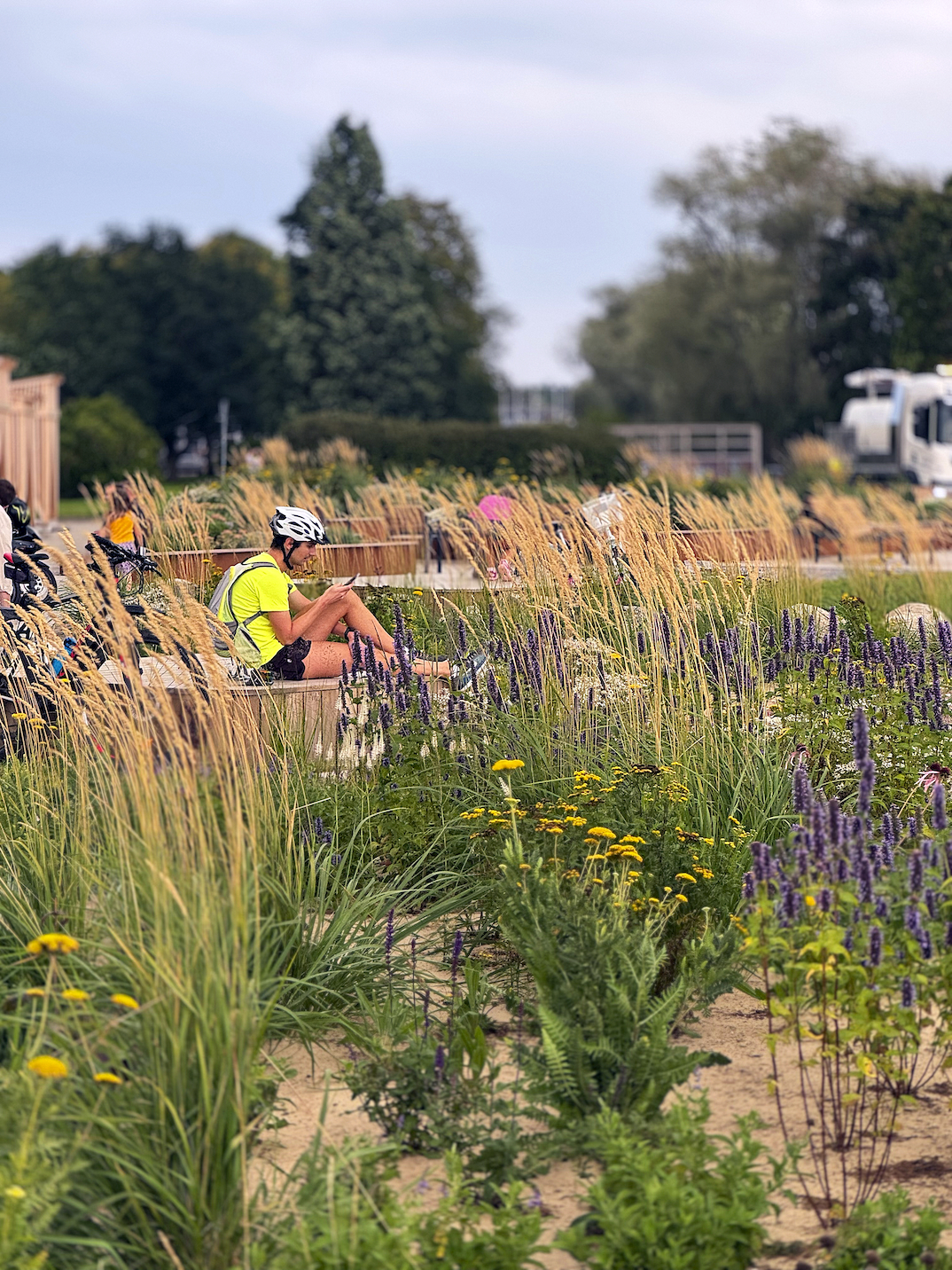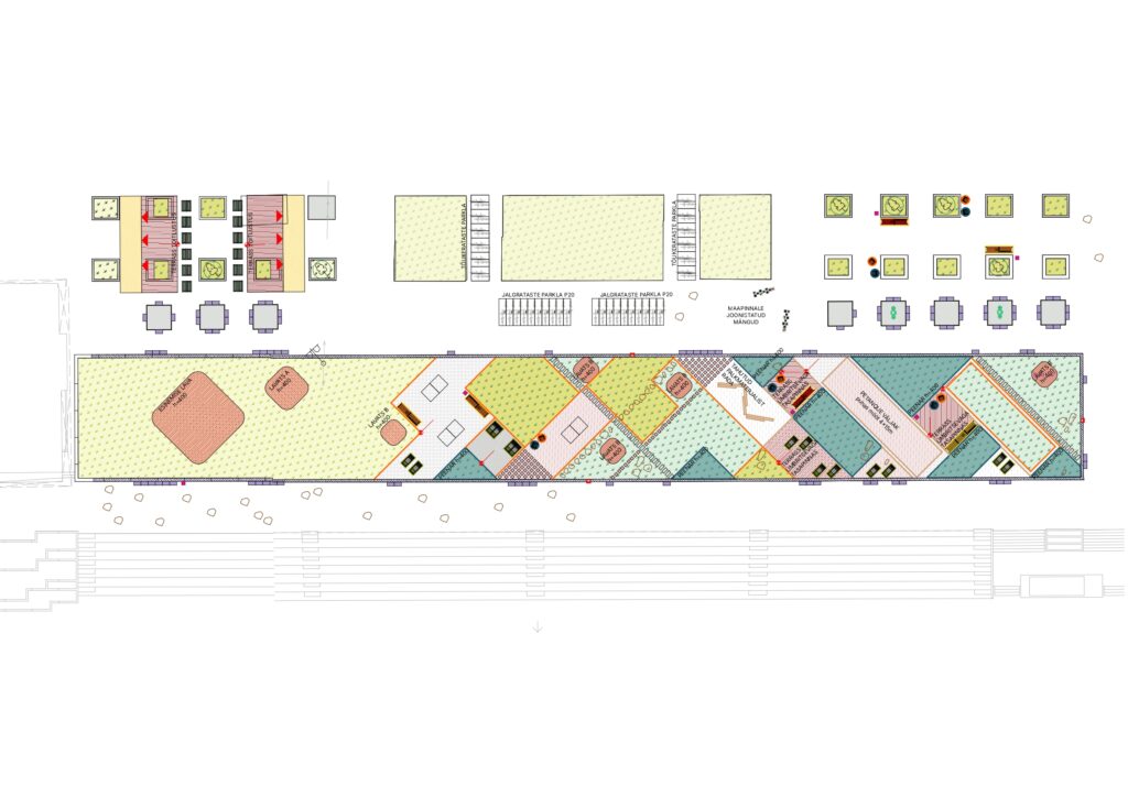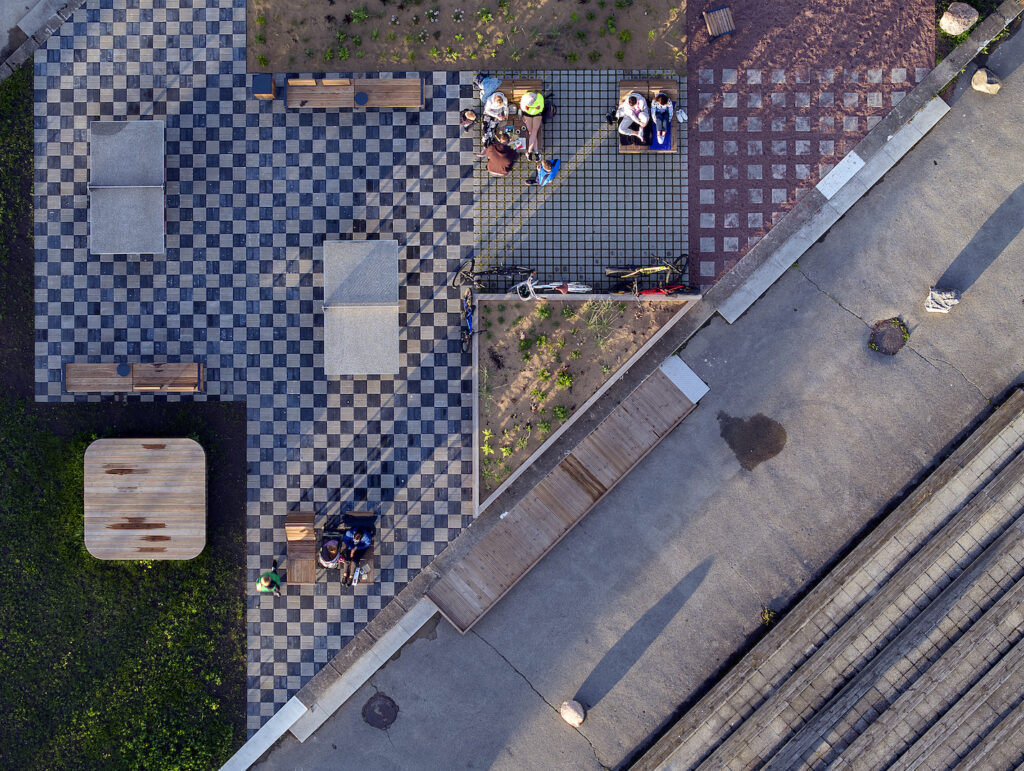 Tänavamööbli asetus on linnalikult tihe ning tänu istemööbli nutikale paigutusele saavad pargimelu üheaegselt nautida erinevad seltskonnad, tundmata sealjuures, et viibitakse tihedas avalikus ruumis. Terrasse kasutatakse päevitamiseks, lugemiseks, akrojoogaks, piknikuks ja lihtsalt kohal olemiseks. Haljastuslahenduses kasutasime 26 erinevat mereäärsetesse oludesse sobivat taimeliiki – erinevaid kõrrelisi, naistenõgest, salveid, puju, kukeharja jt, et haljastus oleks vastupidav ja madala hooldusvajadusega. Usume, et mõtestatud disain väikesel alal saab luua muutusi suuremal skaalal.